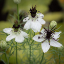 Allerede i knoppstadiet byr denne blomsten på et lite under som vekker nysgjerrigheten. Knoppene danner lysegrønne knuter som hviler i krager av dilliknende bladverk. Når hagen står i høysommerprakt, slår damaskussvartfrøet 'Miss Jekyll Rose' – også kjent som jomfruen i det grønne – ut de bedårende, halvdoble blomstene sine i nyanser av hvitt og rosa. Kronbladene kunne vært klippet ut av silkepapir. Over bladverket danser de åpne blomstene mens de nye knoppene ligger på vent blant bladene. Skjønnheten fortsetter resten av sommeren, men likevel er den langt fra over. Når høsten går mot slutten, danner de lysebrune frøkapslene små kunstverk blant de tørkede, finflikete bladene. 'Miss Jekyll Rose' danser i hagen gjennom en sommer, men i tørkede buketter lever blomsten videre lenge.