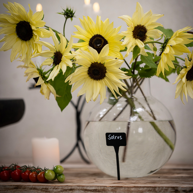 25. Blomsterert 'Mammoth' + Miniatyrsolsikke 'Soluna Lemon' + Pyntekorg 'Apricotta'